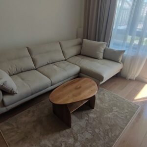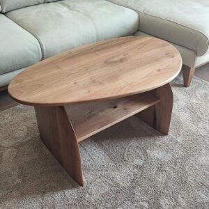 Klub sto izrađen od parenog oraha, sa pločom debljine četiri centimetra i mat poliuretanskim lakom kao završnim premazom.Dimenzije od 90 × 55 centimetara i visina od 45 centimetara čine ga prikladnim za prostor ispred sedećeg nameštaja. Ploča zadržava prirodan izgled drveta, dok mat lak pruža diskretnu zaštitu bez sjaja.Drvene nogare prate ton i teksturu ploče, stvarajući ujednačen vizuelni identitet. Proporcije između debljine radne površine i konstrukcije odražavaju balans između prisustva i funkcionalnosti.Ovo je primer prethodno realizovanog projekta, izrađenog po meri klijenta.