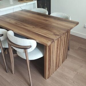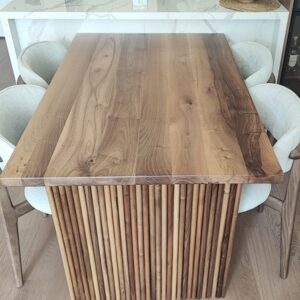 Trpezarijski sto izrađen od punog hrastovog drveta, realizovan prema specifičnim zahtevima prostora i potrebama korisnika.Obrada drveta i završna zaštita odabrani su u skladu sa karakterom enterijera, uz poštovanje prirodne teksture i tonaliteta materijala. Konstrukcija je prilagođena dimenzijama koje su definisane tokom projektovanja.Ovaj primer predstavlja referencu prethodne izrade i ilustruje pristup radu sa punim drvetom u kontekstu trpezarijskih stolova.