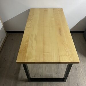 Trpezarijski sto izrađen od punog kiselog drveta, sa metalnim nogarama u crnoj mat završnoj obradi. Ploča dimenzija 120 × 70 cm, debljine 4 cm, zaštićena je poliuretanskim lakom u mat izvedbi koji naglašava prirodnu teksturu materijala.Konstrukcija počiva na metalnim nogarama od pravougaonih cevi profila 50 × 20 mm, završenih mat crnim premazom 3u1. Visina stola od 75 cm obezbeđuje standardne proporcije za trpezarijski prostor. Uz sto je izrađena i klupa dimenzija 100 × 27 cm, visine 45 cm, koja prati isti materijalizacioni i vizuelni jezik.Ovo je primer prethodne izrade po meri klijenta, prikazan kao referenca.