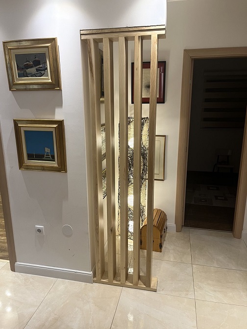 Pregrada od punog jasena, sastavljena od vertikalnih dasaka koje formiraju prozračnu strukturu između prostora.